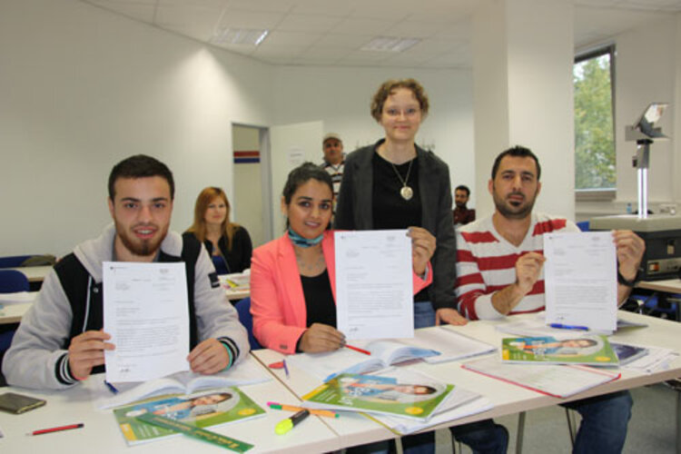 „Bundeskanzlerin Dr. Angela Merkel hat mich gebeten, Ihnen für Ihr Schreiben und Ihre Bemühungen, sich in Deutschland zu integrieren, zu danken. …“ So lautet die erste Zeile eines Briefes von Jens Hoffmann, einem Mitarbeiter im Koordinierungsstab Flüchtlingspolitik des Bundeskanzleramts in Berlin. Adressiert hat er diesen an Lida Daneshwar, Ahmad Alhnef und Osama Aliaji. Die drei sind Teilnehmer im Sprachkurs C 37 der Niveaustufe B2 an den <link _blank internal-link>Euro-Schulen Chemnitz. Doch warum? „Das ist schnell erklärt“, schmunzelt Änne Trinks, die Leiterin des Kurses.