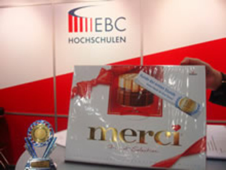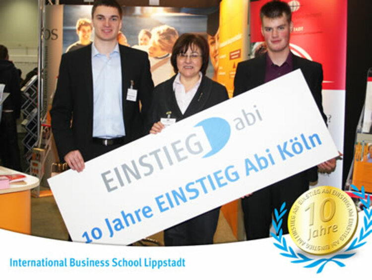 Die Bildungsmesse "EINSTIEG Abi" fand dieses Jahr zum 10. Mal in Köln statt. Unter den Kunden der ersten Stunde, die mit einem Pokal und einem süßen "Dankeschön" geehrt wurden, waren auch drei ESO-Mitgliedsinstitute: Die IBS Lippstadt, die ISM und die EBCs. Insgesamt waren sieben ESO-Mitgliedsschulen unter den 350 Ausstellern mit einem eigenen Stand vertreten: die Euro Akademie (Köln, Dortmund), die EBC Hochschulen Düsseldorf und Hamburg, die International Business School Berlin, die International School of Management (Dortmund, Frankfurt, Hamburg, München), das IT Center Dortmund, die International Business School Lippstadt/ Nürnberg und die Munich Business School.