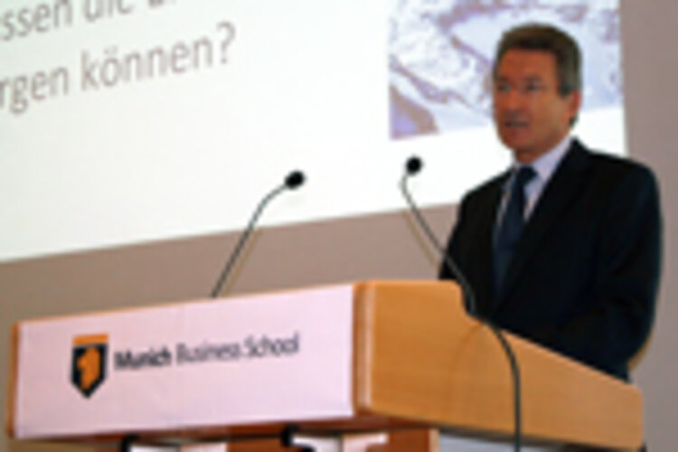 Einen vollen Saal und eine spannende Diskussion erlebte das Haus der Bayerischen Wirtschaft, als der Präsident der Munich Business School, Dr. Rudolf Gröger unter anderem Wolfgang Huber, den ehemaligen Bischof und Ratsvorsitzenden der Evangelischen Kirche in Deutschland, zur Debatte über die Ausbildung der Führungskräfte von morgen bat. Gemeinsam mit dem Unternehmer Michael Illbruck und dem CEO der Rodenstock GmbH, Dr. Olaf Göttgens diskutierten sie über das Thema "Leadership 2020 - was müssen die Entscheider von morgen können?
