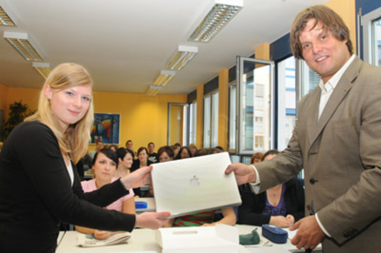 An den Euro-Schulen Dresden beginnt mit dem neuen Schuljahr ein neues Zeitalter im Bemühen um innovative und praxisbezogene Ausbildung. Gestern erhielten 70 Beginner ihr eigenes MacBook zur freien Verwendung im Unterricht und zu Hause. Symbolisch überreichte Martin Strathemann, Key Acount Manager bei Apple Deutschland, Sitz München, die MacBooks. Im Rahmen des Gesamtprojektes investieren die Euro-Schulen Dresden circa 70.000 Euro.