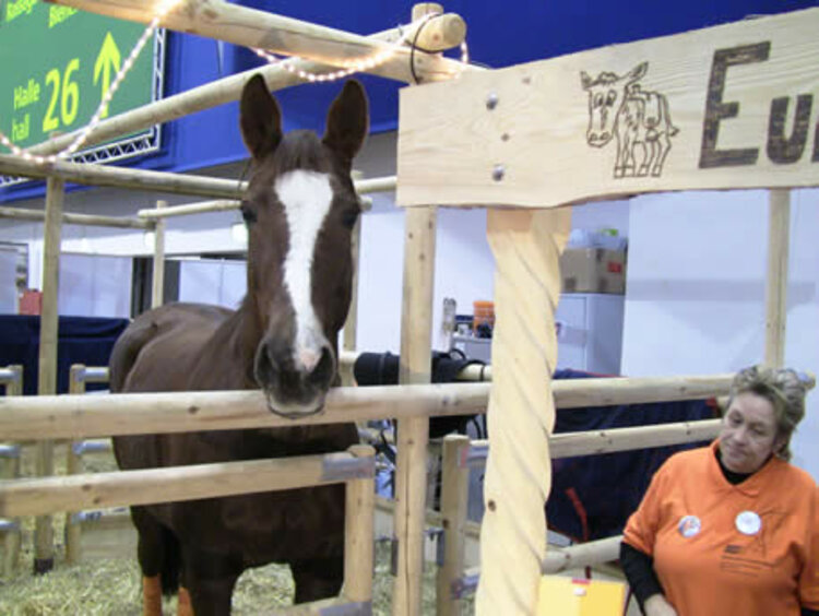 Am Messestand der Euro-Schulen Neuruppin konnten sich die zahlreichen Besucher über die Ausbildung zum Reittherapeuten informieren und zwei Pferde besichtigen. Teilnehmer der BvB absolvierten erfolgreich