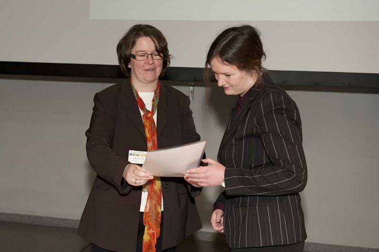 Die 35-jährige Andrea Greve nahm den Nachwuchsförderpreis auf der Verbandstagung am 17. Februar 2011 in Hannover aus den Händen von Katharina Thorn entgegen, der Vorsitzenden des DVMD. Damit geht der DVMD-Juniorenpreis in der Kategorie „Praktikums- und Studienarbeiten Medizinische Dokumentationsassistenz“ ununterbrochen seit 2005 nach Trier. Ausgezeichnet werden innovative und originäre Abschlussarbeiten, wobei es sich bei Andrea Greves Arbeit letztlich sogar um eine eigenständige wissenschaftliche Publikation handelt. „Dies zeigt einmal mehr, wie praxisnah und auf welch hohem Level die Medizinischen Dokumentationsassistenten an den Euro-Schulen Trier ausgebildet werden“, freut sich Ulrich Wirth, Leiter der Höheren Berufsfachschule für Medizinische Dokumentationsassistenten: „Und in puncto Beschäftigungsfähigkeit sind wir uns sicher, dass sich unsere berufsfachschulische Ausbildung auch locker gegenüber entsprechenden Studienangeboten behaupten kann.“