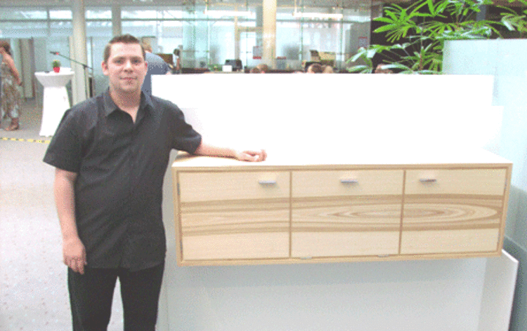 im letzten Jahr, bei den Jahrgangsbesten. Der Tischlergeselle Mark Hanke wurde im Rahmen einer Feier in der Sparkasse Recklinghausen von der Innung NRW für seine Spitzenleistung geehrt. Er ist unter den sechs besten. Sein Gesellenstück (siehe Foto) wurde in der Sparkasse Recklinghausen ausgestellt. Die Euro-Schulen Recklinghausen als Ausbildungsbetrieb erhielten eine Ehrenurkunde als Anerkennung der Verdienste um Ausbildung im Innungswettbewerb „Die gute Form“ von der Innung NRW.