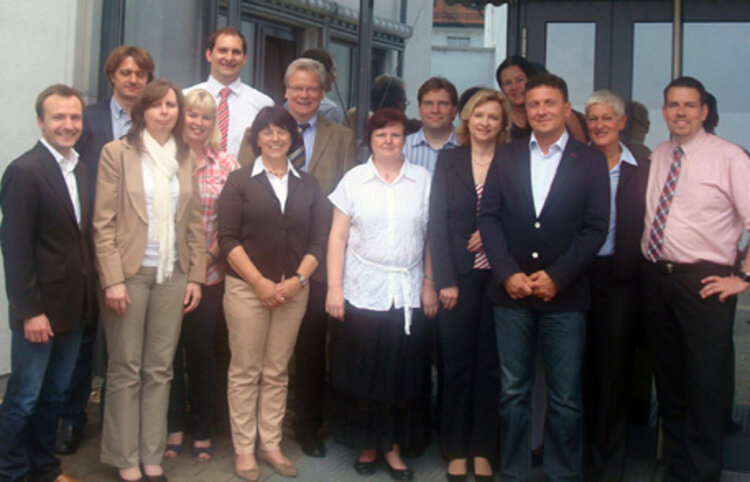 Das Foto zeigt die Teilnehmer der jüngsten Veranstaltung (v.l.n.r.): Michael Eichhorn (Teamleiter ECC Stockstadt), Daniel Thull (Trier), Silvia Blasig (Chemnitz), Jana Ilsmann (Dessau), Andrzej Taube (Leverkusen), Dr. Margit Riße-Göpfert (Dresden), Dr. Undine Busse (Bitterfeld-Wolfen), Heiko Delventhal (Leiter Marketing und Vertrieb EBC Hochschule), Kilian Daske (Berlin), Kathrin Hillig (Dresden), Silvia Semidei (Geschäftsführerin ESO), Michael Kogel (ESO Firmenservice Sachsen-Anhalt), Astrid Lange (Hamburg) und Patrick Wintter (Leiter Marketing und Vertrieb ESO).