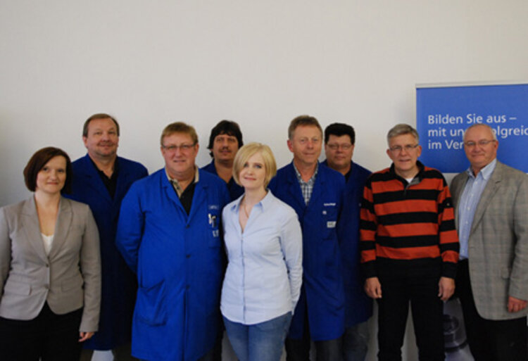 Das Foto zeigt (von rechts) Günter Mößel, Rainer Strobel, Peter Rauch, Karl Schechinger, Jolene Rashed, Thomas Meixner, Gerhard Löffler, Roland Scheller und Lydia Olschock.