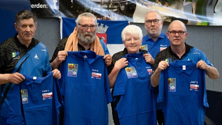 Bei unserer internen Vereinsmeisterschaft am 12. April 2025 konnte ich nun Polo-Shirts mit dem Logo der Euro-Schulen Oldenburg an die vier Oldenburg-Fahrer des SC Buschhausen 1912, Franz Lichtenberg, Kurt Kauer, Ulla Apelt und Ede Schunk übergeben. Sie wurden mit großem Dank an Silvia Semidei gerne angenommen. Zusammen mit Ludwig Knapp, dem Leiter der Euro-Schulen Oldenburg und anderen interessierten Mitarbeitenden werden wir die Spielkameraden vor Ort in Oldenburg lautstark und tatkräftig unterstützen.