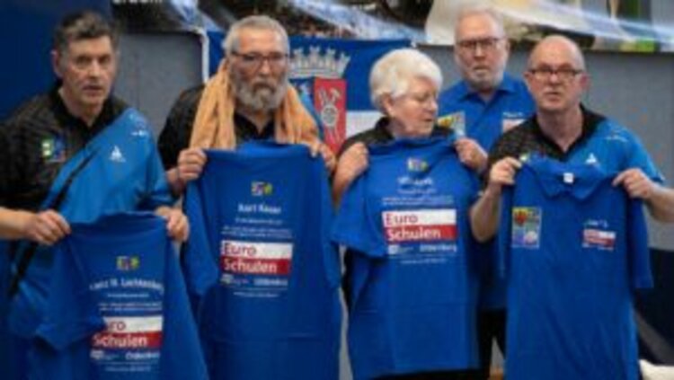 "Bei unserer internen Vereinsmeisterschaft am 12. April 2025 konnte ich nun Polo-Shirts mit dem Logo der Euro-Schulen Oldenburg an die vier Oldenburg-Fahrer des SC Buschhausen 1912, Franz Lichtenberg, Kurt Kauer, Ulla Apelt und Ede Schunk übergeben. Sie wurden mit großem Dank an Silvia Semidei gerne angenommen. Zusammen mit Ludwig Knapp, dem Leiter der Euro-Schulen Oldenburg und anderen interessierten Mitarbeitenden werden wir die Spielkameraden vor Ort in Oldenburg lautstark und tatkräftig unterstützen. Silvia Semidei hat zugesagt, zu Hause in Stockstadt die Daumen zu drücken. Darum wurde auch sie mit einem entsprechenden Fan-Shirt ausgestattet."